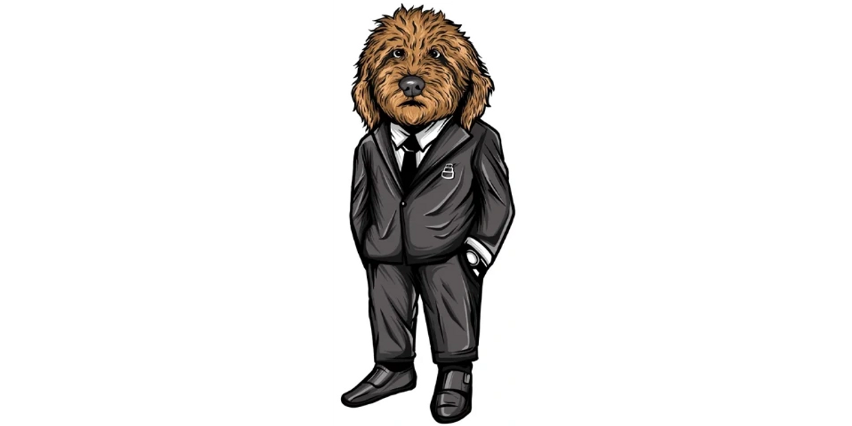 I'm Lamington, a Golden Doodle. I was named after the Australian cake, made of moist vanilla sponge, dipped in chocolate icing and coated in coconut. I represent the brand and I'm the face of the organization.
